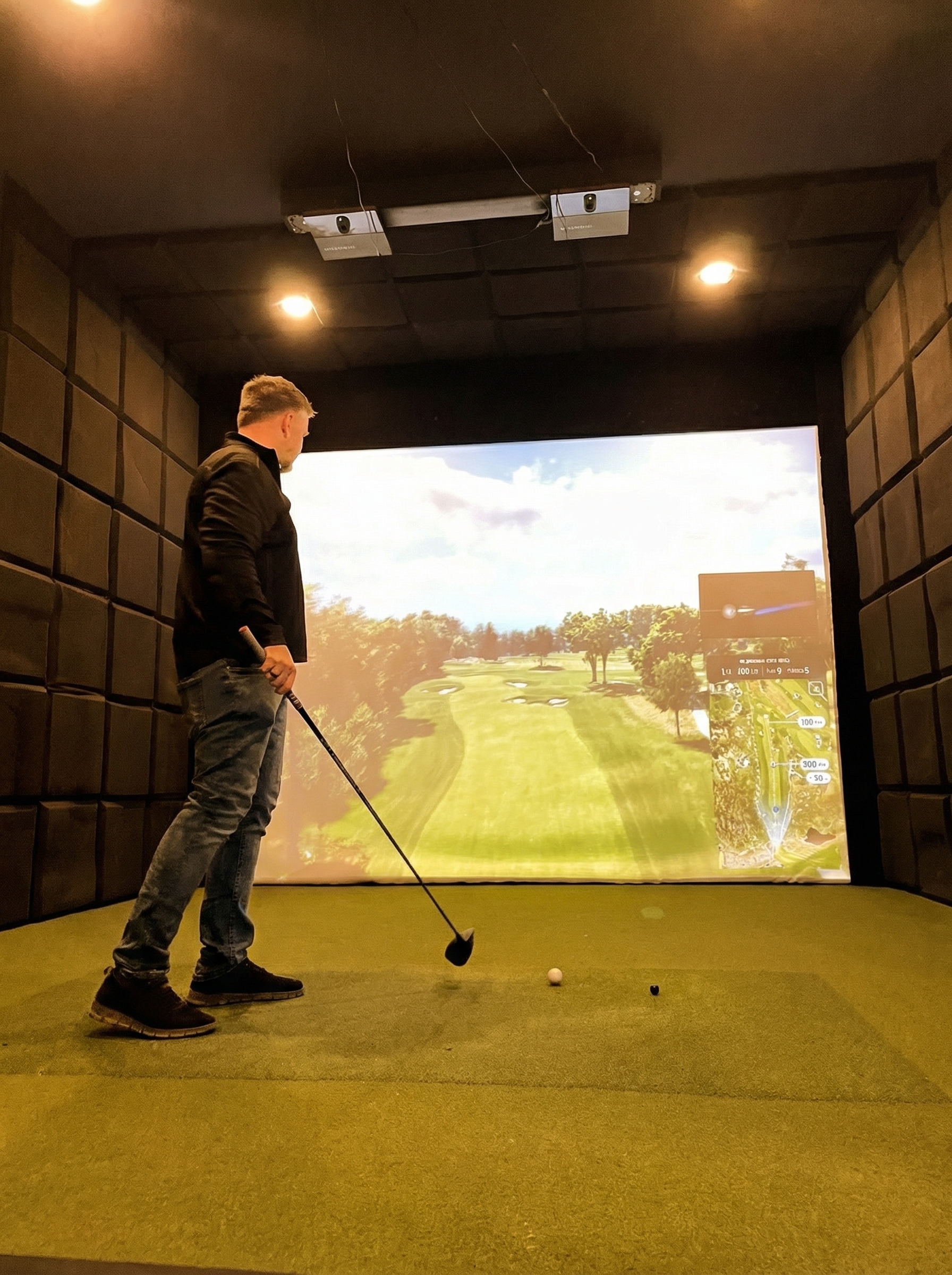 Wood Lane is 2,200 sq ft of private golf and social space — four TrackMan bays, a bar, and a private room in Langhorne, PA.
